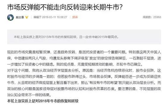 11月21日消息,11月20日下午,戴志康的微博突然更新,而且表达了对A股的看法,着实让吃瓜群众热议了一番。众所周知,戴志康此前因涉嫌非法吸收公