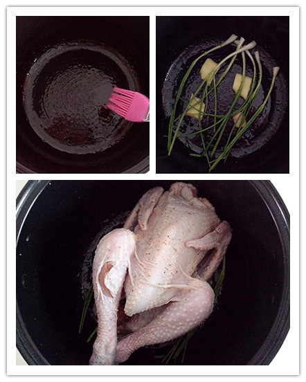 求助:电饭煲盐焗鸡的制作方法!- 答:盐焗鸡调料有吗? 鸡洗净,控水,抹上调料,腌制半个小时,准备几棵葱,电饭煲里面放入少许油,把葱放进去,再把腌好的鸡进去(鸡腹朝下),按下电饭煲按钮,等电饭煲开关自动跳起,把