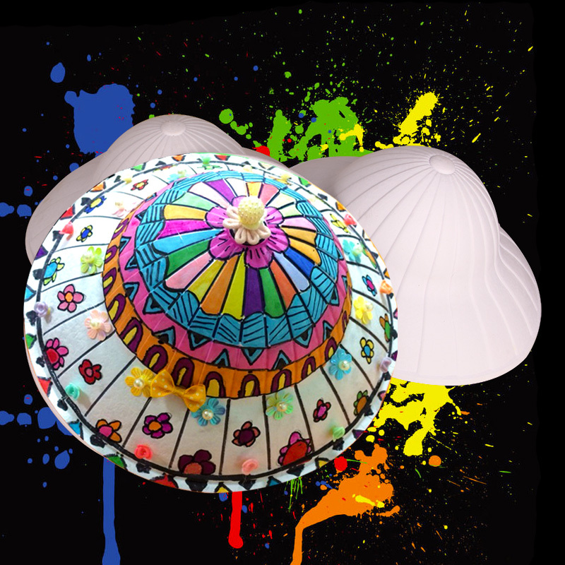 cDIY白色纸浆帽子男女手绘手工制作空白幼儿园儿童彩绘舞会道具QMXD拼装