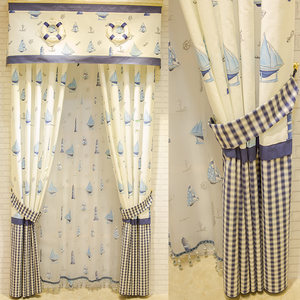 儿童房窗帘 卡通男孩 卧室飘窗海洋风格蓝色小帆船地中海北欧纯棉