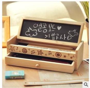 韩国文具 新款木制小黑板笔盒\/多功能铅笔盒 木质双层笔盒