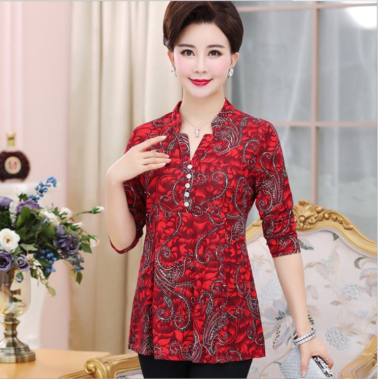 衫时尚妈妈装春秋装上衣闲庭看花女士 .