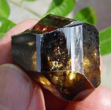 锡石 英文名称cassiterite 锡的氧化物。几乎都有fe2o3,ta2o5,nb2o5,tio2,mno,feo的混入,偶而也有zro2和wo3。正方晶系。晶体具四方双锥的短柱状,常见特殊的膝状双晶。也呈不规则粒状,偶见致密块状。呈黄、红、褐、黑等色,也有白色和无色。金刚光泽,多为半透明-不透明。一轴正晶,折射率ne=2.093~2.101,no=l 997~2.006,重折