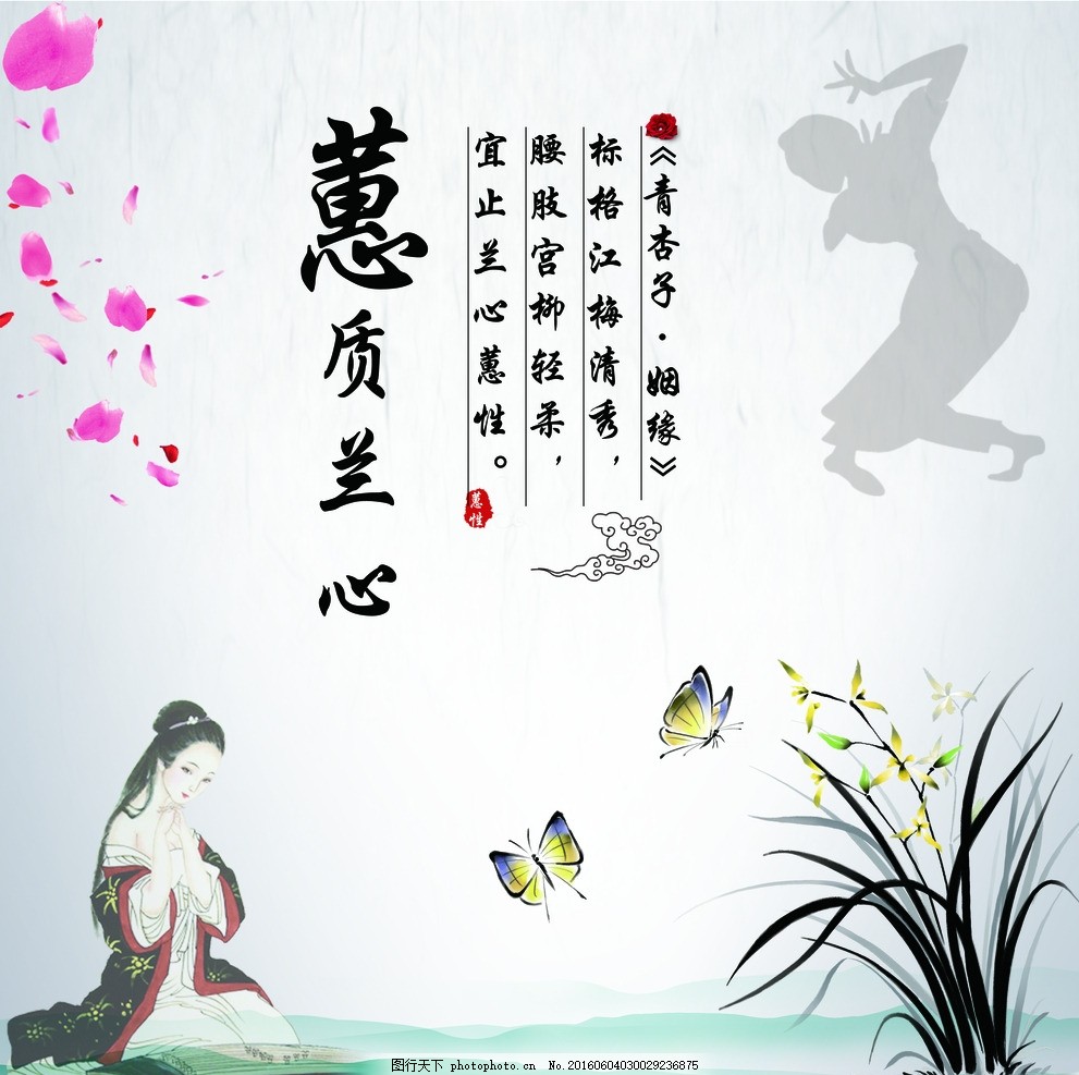 简介:蕙质兰心, 比喻女子心地"蕙心"似的纯洁,品质"兰花"似的高雅。出处柳永 《离别难》词:"有天然,蕙质兰心