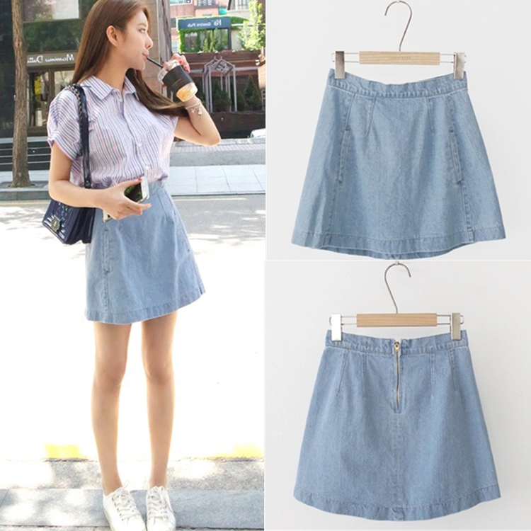 牛仔短裙子a韩国穿搭|牛仔短裙子a韩国