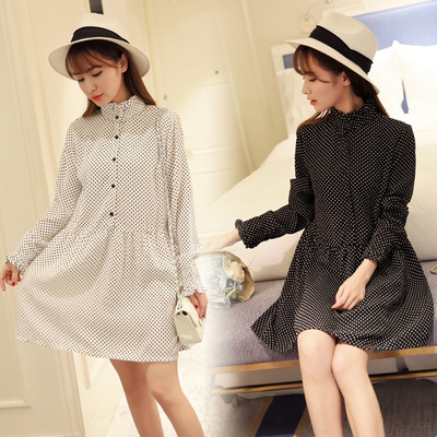 孕妇装波点花边立领连衣裙9007#-淘宝网