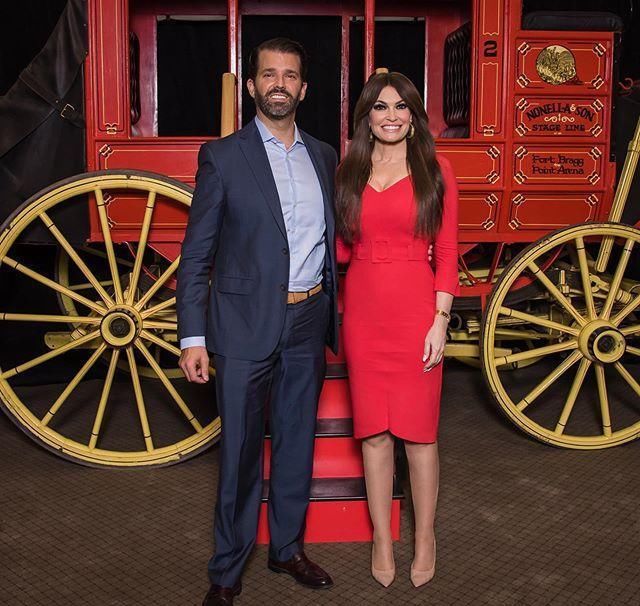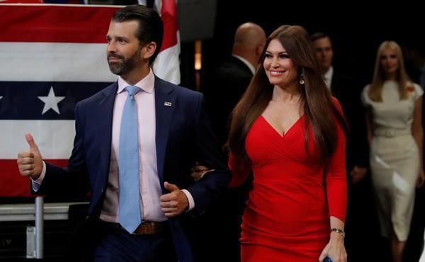 原标题:特朗普42岁的儿子崇拜51岁的女友上天!穿着红裙子和职业线的女友很迷人,漂亮的
