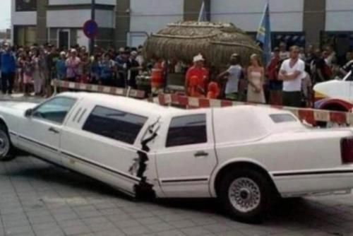 第四,吴看着小辫子穿肚笑了半天,把加长车直接从中间劈开,估计是土豪车主平时养尊处优吃得太多了,才坐到车中间,面对这难以承受的重量,车说不承受,不承受,直接从中间劈开要是车主能考虑到汽车的感觉并减轻重量就好了