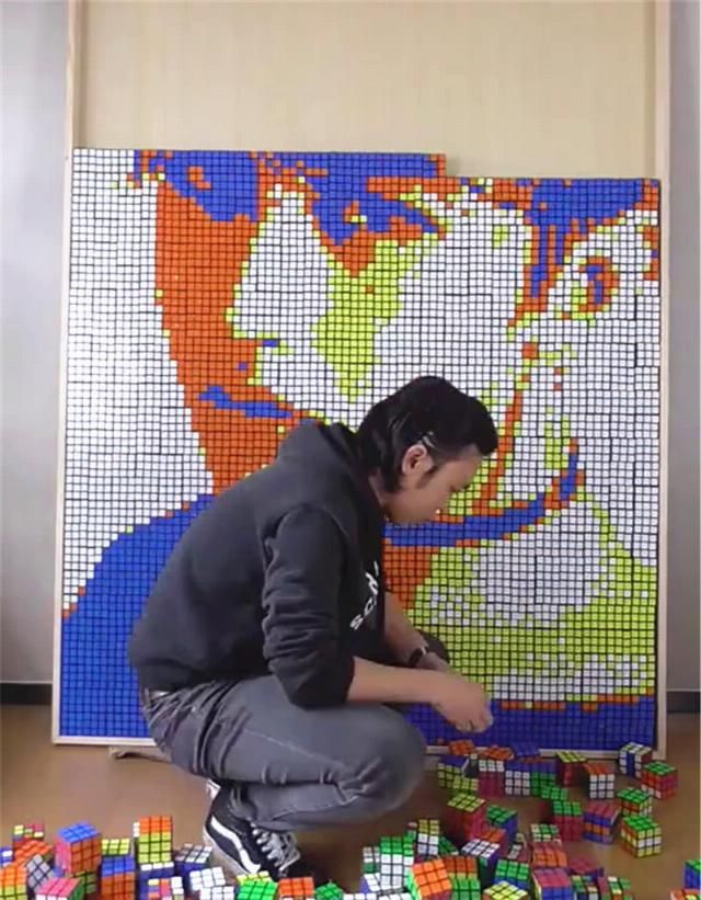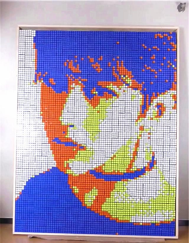 你可以看到这位艺术家的小弟弟,把一堆堆的魔方堆在一起,给蔡画像在这幅画像中,你甚至可以看到蔡脸上的阴影效果。用魔方拼图画画不是很棒吗?看了理科学生和艺术学生玩魔方的方式后,谁给你留下了玩魔方的印象?
