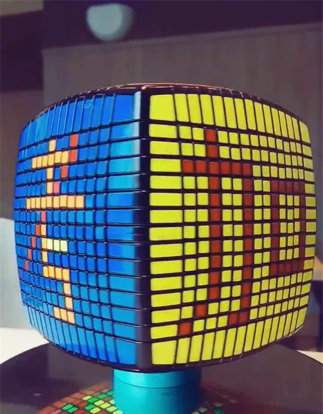 在艺术专业的学生手中,他们的魔方可能不是特别先进,这个简单的三阶魔方足够他们玩了,但是他们把很多魔方放在一起,却能形成意想不到的效果。