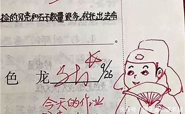 这个学生的书法真的很工整,似乎很符合老师的标准。然后老师在试卷上画了一个花花公子。他看到那家伙穿着古装,戴着一顶官帽子,拿着一把扇子。他和你在一起看起来很开心。此外,老师还写了一行字,意思是今天的作业非常漂亮。她非常喜欢它。让学生写好确实是一项艰苦的努力。