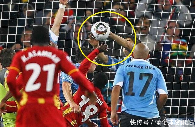 当时,乌拉圭门将穆斯莱拉已经开始进攻,站在门前的苏亚雷斯用腿挡住了对手致命的一击。然而,苏亚雷斯的腿已经无力对抗加纳的半身射门。你想看着球进网,看着球队被淘汰吗?当然不是,苏亚雷斯选择在关键时刻牺牲自己。他毅然选择再次用手挡球。同样,裁判果断地给苏亚雷斯出示红牌,罚下他,并判给加纳一个点球。