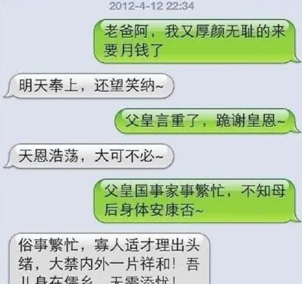 :一个小学三年级的女生。她妈妈给她买了一个新铅笔盒。两天后,她发现铅笔盒不见了,问她在哪里。女孩平静地回答道:“我花了一笔分手费给我的男朋友……”萧乾有趣的聊天记录:爸爸坐在公园的长椅上,全神贯注地看报纸,而他在旁边玩耍的儿子突然指着天空说:“爸爸,飞机!爸爸没有抬起头,漫不经心地说:小心,别用手碰它!