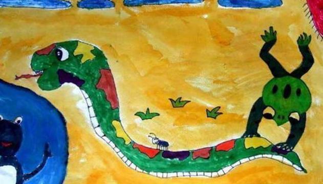 原来,孩子的内心世界是否经历过一些不好的事情都可以在绘画中反映出来。例如,这个孩子画了一条凶猛的蛇。在其他人眼里,这和普通的蛇没有什么不同。然而,从心理学的角度来看,我们可以看到一些线索。警方报案后,经过详细调查,结果确实与朋友的分析一致。