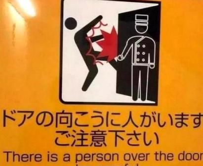 像这样的口号还有很多。在一家日本便利商店的门口,有一块牌子写着“门上有人,请注意”。看到这个标语,我不禁把画面填满,“门上有个人”?这也太诡异了。结果是,店主被要求提醒游客开门时要小心,以免撞到对面的人。只有经过这样的解释,中国游客才突然意识到,这样的口号真的让中国游客哭笑不得。
