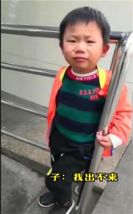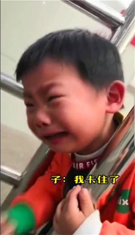 儿说他出不去,身子前倾,没想到后脑勺出不去,但身子前倾就能找出来但是很明显,儿子没有意识到这一点,他一直在哭,认为他无法逃脱。爸爸田