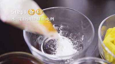 步骤1将洋葱、彩椒、菠萝片浸泡在盐水中备用准备适量的淀粉或生粉,按比例混合成水淀粉。