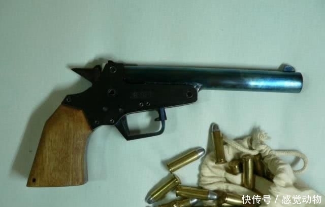 自制手枪,配有. 38手枪和铆钉,排列得非常整齐,生产商为其提供了一个木制手柄,这给原本单调的手枪本体增添了新的色彩。