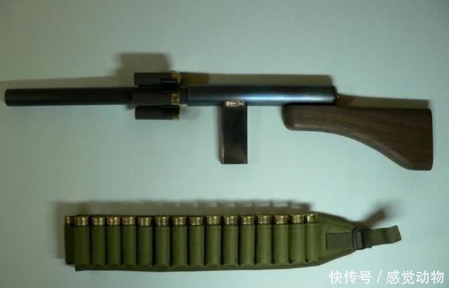 配有12发弹带的国产散弹枪,但缺点是国产武器的结构总是不如装配线上生产的大型产品,枪体没有任何降低后坐力的装置。