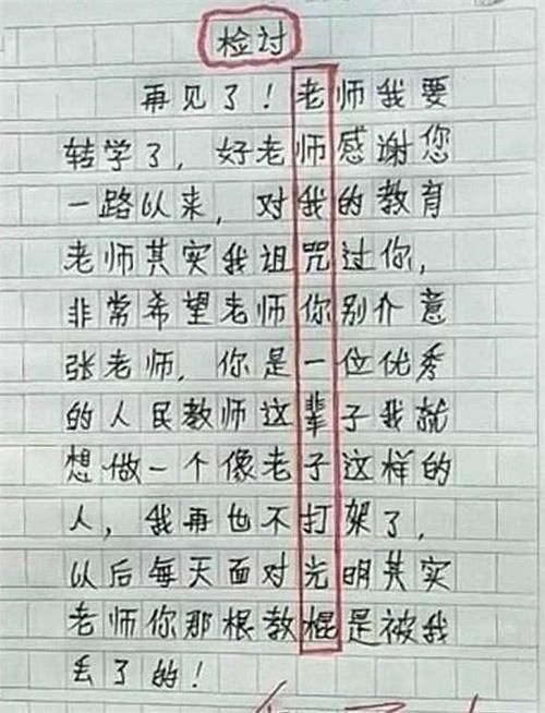王老师原以为老虎向同学道歉,并写了一封自我批评的信来表示他意识到自己的错误。然而,王老师从自我批评信中找到了线索。如果他一行一行地读,老虎似乎真诚地反映,但如果他垂直地读,他会发现老虎真的很淘气。原来,老虎不服气,写了一本带有“西藏诗”的自我批评的书,用六个字直立着读,那就是:我不能生你的气吗?王老师别无选择,只能决定联系老虎的父母。