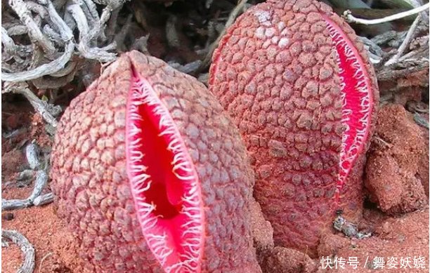 是一种被当地人称为“尸花”的奇怪生物,也叫非洲白鹭花。这是一种特殊的肉色寄生花,花吸附在附近灌木的根和茎上。花朵散发出恶臭,吸引成群的腐肉甲虫,并以它们为食。提示:
