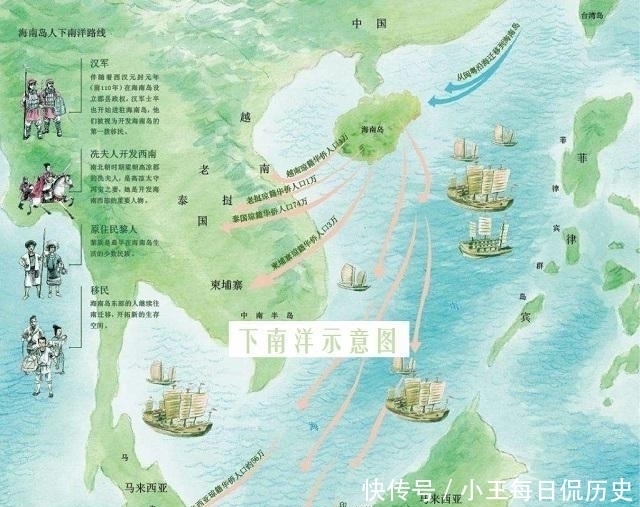 结合历史时期,中国南方大量人口南迁,这应该与下东南亚的活动有关。下东南亚是从明朝到中华民国跨越数百年的大规模人口迁移。主要的移民目的地是福建、广东、海南和其他沿海地区。移民目的地是东南亚,包括印度尼西亚、马来西亚、新加坡、菲律宾等地。