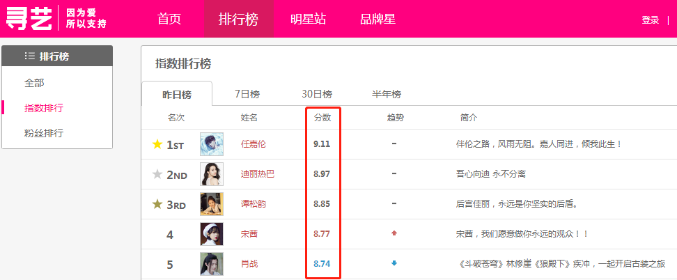 最近,从“艺术搜索”网站上了解到,目前上榜的前五名演员分别是:任家伦和谭松云,根据他们在《皇家服装下》中的表现,分别以9.11和8.85的指数排名第一和第三。迪丽热巴以8.97的指数排名第二。宋Xi以8.77的指数跌至第四位。小展以8.74的指数排名最后下面,作者对名单上的五位艺术家做一个简要的评论,并推荐他们的主要代表作品。从韩学义归来的任家伦(