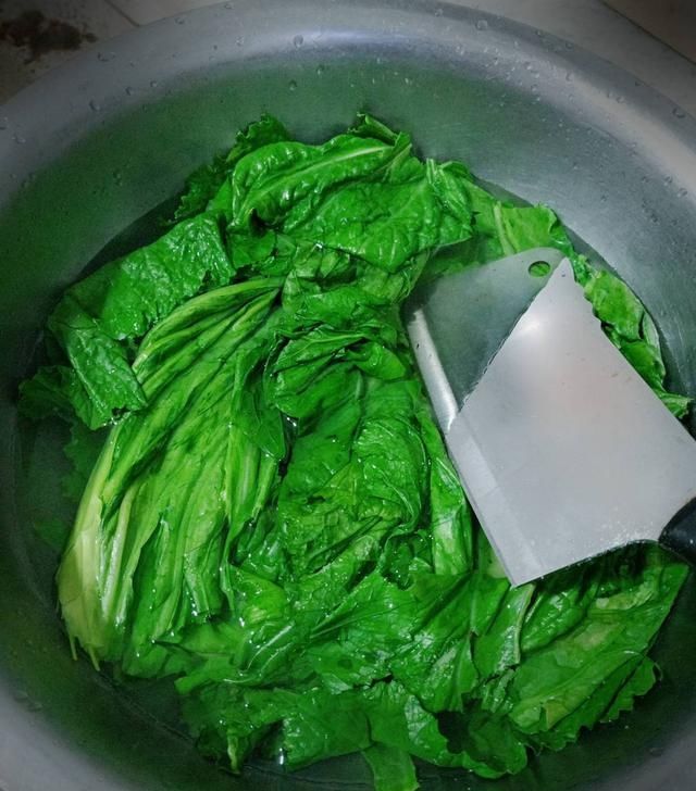 1。将莴苣叶洗净,放入盆中,倒入刚刚煮沸的白开水