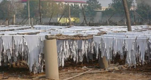 那个人在白布后面什么也没看见,但是臭味是从哪里来的?后面的人从当地人那里知道,发臭的白布实际上是动物的皮,主要是狗和猫的皮,剥下来的皮浮在水面上是白色的。