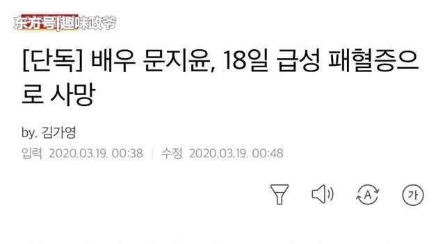 3年3月19日,据媒体报道,著名男星文志云于3月18日晚8时56分死于急性败血症,年仅37岁!文志云是韩国娱乐圈非常受欢迎的明星。他曾出现在许多流行的韩剧中,如《英雄春香》和《奶酪陷阱》。他很受大家的欢迎。虽然他价值不高,但他仍然以他的力量受到大家的喜爱和认可!