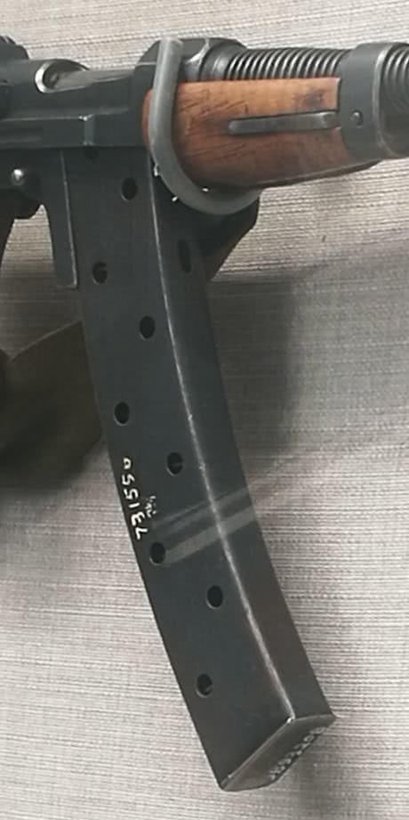 这把枪最值得注意的内容是它的杂志,这在旧中国是独一无二的。所用的弹匣是一个7.63×25毫米毛瑟手枪的弧形弹匣,看起来是方形的和扁平的。榫的外观和安装方法都与汤普森密切相关。更奇怪的是杂志的正面有一个很长的开口。许多人推测制造枪的人可能试图用其他方式修理弹匣。
