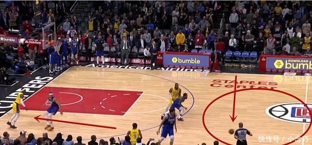 根据当时的情况,沃尔顿应该把球安排给波普,但是“怪物”博班完全挡住了朗多的视线,而快船的其他成员也在站岗,封锁了接收路线!朗多主动出击,直接把球打在了博班的腿上!
