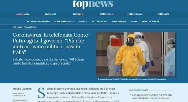 《新闻》给出的证据是,从现在起,俄罗斯提供的救济援助有80%以上是无用的。到目前为止,它并没有减少疾病的传播和意大利人的死亡率。但与此同时,许多随同救援物资而来的俄罗斯士兵趁机出没于一些重要的军事基地,怀疑他们在收集情报。对此,意大利媒体呼吁北约紧急干预,防止出现并发症俄罗斯大使馆对