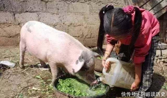 |上世纪80年代中国历史的老照片:图为一个农村小女孩在猪圈里养猪。她将在很小的时候就开始帮助她的家人。