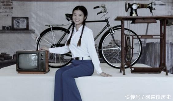|上世纪80年代中国历史的老照片:这张照片展示了一个面容姣好的漂亮女孩和她与三大“电视机、自行车和缝纫机”的婚姻