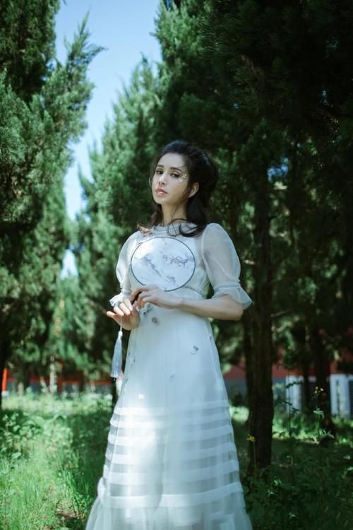 在面料的选择上,轻薄柔软的面料具有抗老化效果如薄纱、雪纺、薄纱等面料,裙子的设计能让你看起来充满仙气。例如,李若彤下图中的雪纺裙子、袖口和裙子是通过拼接和层压设计的。隐约可见的皮肤暴露方法非常具有挑衅性。将微卷的长发和古色古香的圆形扇子搭配起来真是太棒了。