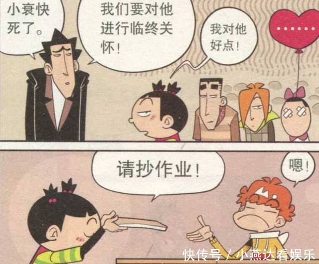 金老师建议:阿帅快死了,我们应该给他临终关怀,大脸姐姐同意了:我对他好一些在接下来的几天里,大脸妹妹的作业被帅给抄到了