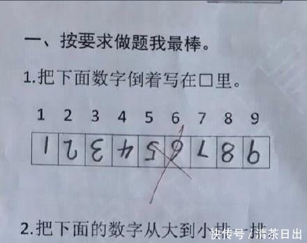 这是一道数学题。这个问题要求在方框中颠倒写下下列数字事实上,题目的意思是以相反的顺序写1-9。这个学生真的很有天赋,并且把这些数字反过来写结果,小学生很难写出来,老师也没有给他们任何鼓励。据估计,老师的心是让孩子们学习一些功课,以免下次无缘无故地丢了一些分数。