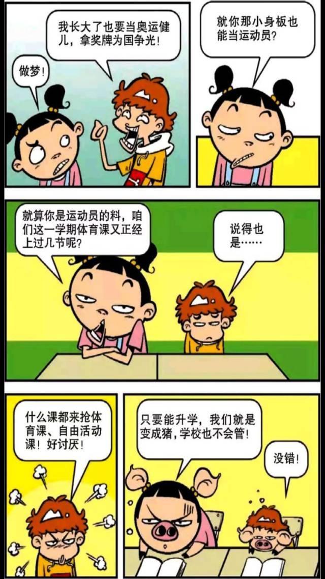 学校没有几节体育课。阿水和大脸妹妹都抱怨说,为了进一所更高的学校,他们会变成猪,不会在乎。< p>