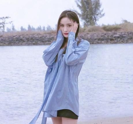 迷你杨穿着一件蓝白相间的连衣裙,可以说是娱乐圈最受欢迎的女演员之一..正如你所看到的,这一次在一张宣传照片中,迷你杨穿着一件白色圆领t恤和一条同样颜色的超级短裤。