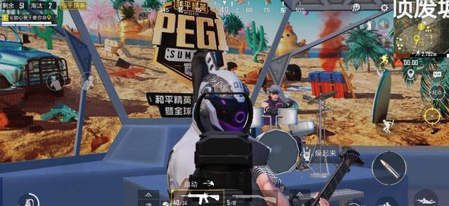 小雨干拿起一把M416,打开镜子直接对着吉他手的头。没想到,这个人一点也不惊慌,继续悠闲地弹着吉他。