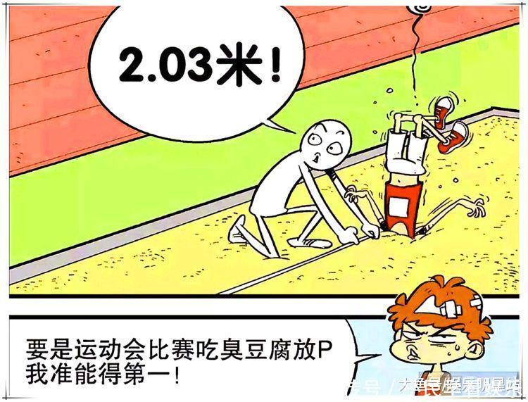 果然,阿帅直接跳出了2.03米大关,但他一头栽到了地上,就像一只鸵鸟。然而,这并不影响分数。出来后,阿帅终于忍不住抱怨了。要是他在比赛中吃了臭豆腐就好了!