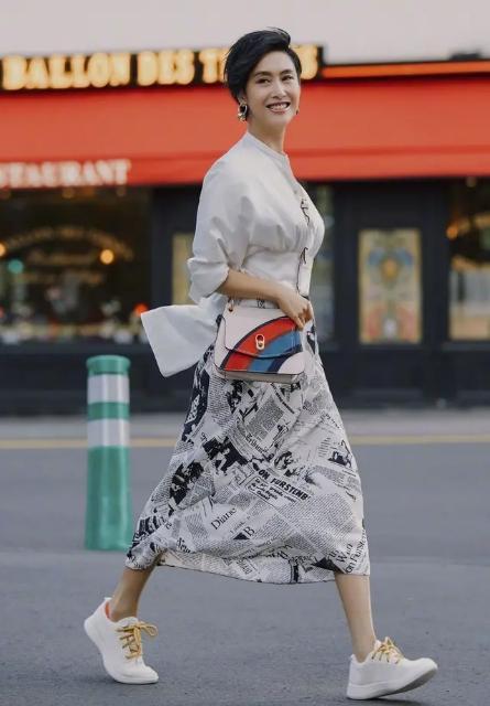 如果你想显高,你也可以选择a字裙,它对身体更包容,即使腿型不适合女生,你也可以放心选择。上身可以搭配一件简单的白色衬衫,让人们看起来更精致,裙子的长度控制在小腿的一半,这样不仅可以露出肉,还可以露出小腿最薄的部分,给人一种苗条的感觉,是通勤者穿着的最佳选择。