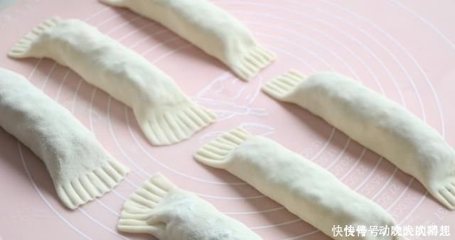 6,然后将其折叠起来,按压并卷起,稍微修剪两侧,用叉子压出图案密封;