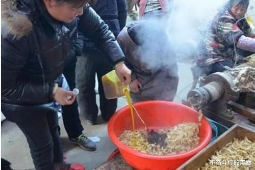 也是一箱老干妈旁边的零食。 人造肉做好后,倒入一个大盆里。然后女人开始往盆里倒大豆油和干妈辣椒酱。配料混合均匀后,点心就做好了。小吃也很简单。它尝起来又辣又辣,做一个盆不到5分钟。买家也排着长队。这对夫妇暂时没有时间休息。