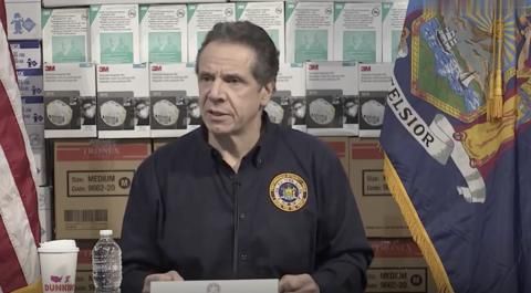 科莫州长的防疫之战在24日谴责了联邦政府无效的防疫努力,并连续提出了三个问题:“呼吸机在哪里?防护服在哪里?面具在哪里?总统说这是一场战争,那么我们必须表现得像一场战争!”他指责美国联邦紧急事务署向纽约发送了400个呼吸器,但纽约需要30,000个,“然后你可以在这26,000个将死的人中选择。”(注:科莫的数字错了)