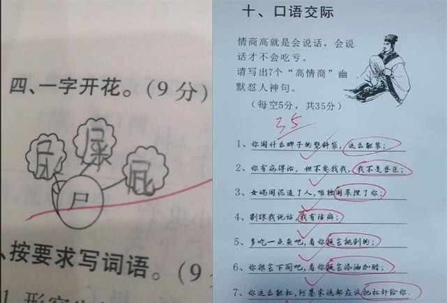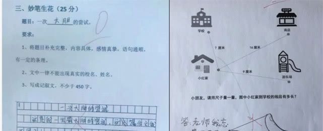 学生在课堂上改变了他们的“流氓”,忍受了试卷,最后看到了班主任:都不守规矩!最后一张也是试卷,题目是一个大胆的尝试,所以学生放弃了直接写作文,老师的评语真的很尖锐,而老师在左边右边给学生量作业的尺寸,但是孩子忘记带尺子,所以他画了一只手的样子,告诉老师大概有这么长,老师没有想到这样的答案吗?