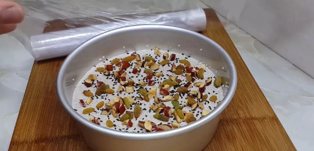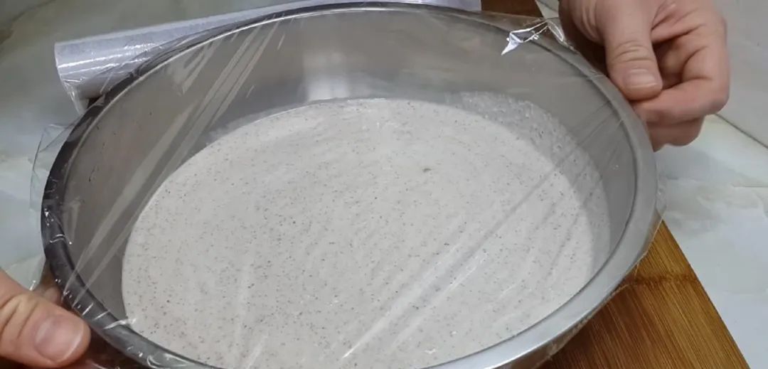 上,重复操作2-3次,用一次性保鲜膜包好(用力敲几次,醒来10分钟两次)