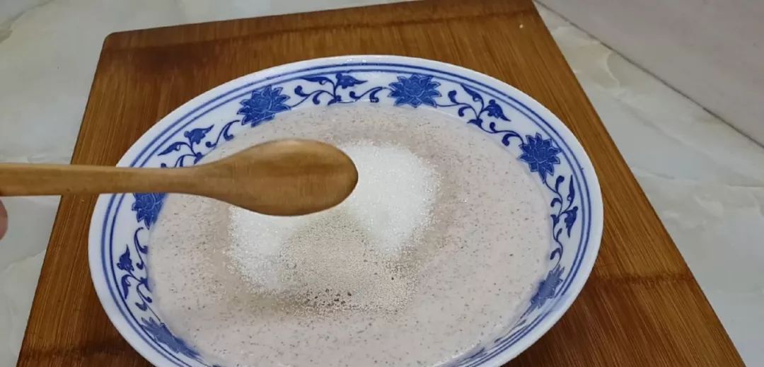加入3克酵母,加入50克白糖,用筷子搅拌均匀