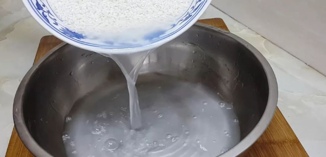 碗中,加入清水,浸泡一夜(大米预先洗净,清水更换2-3次)